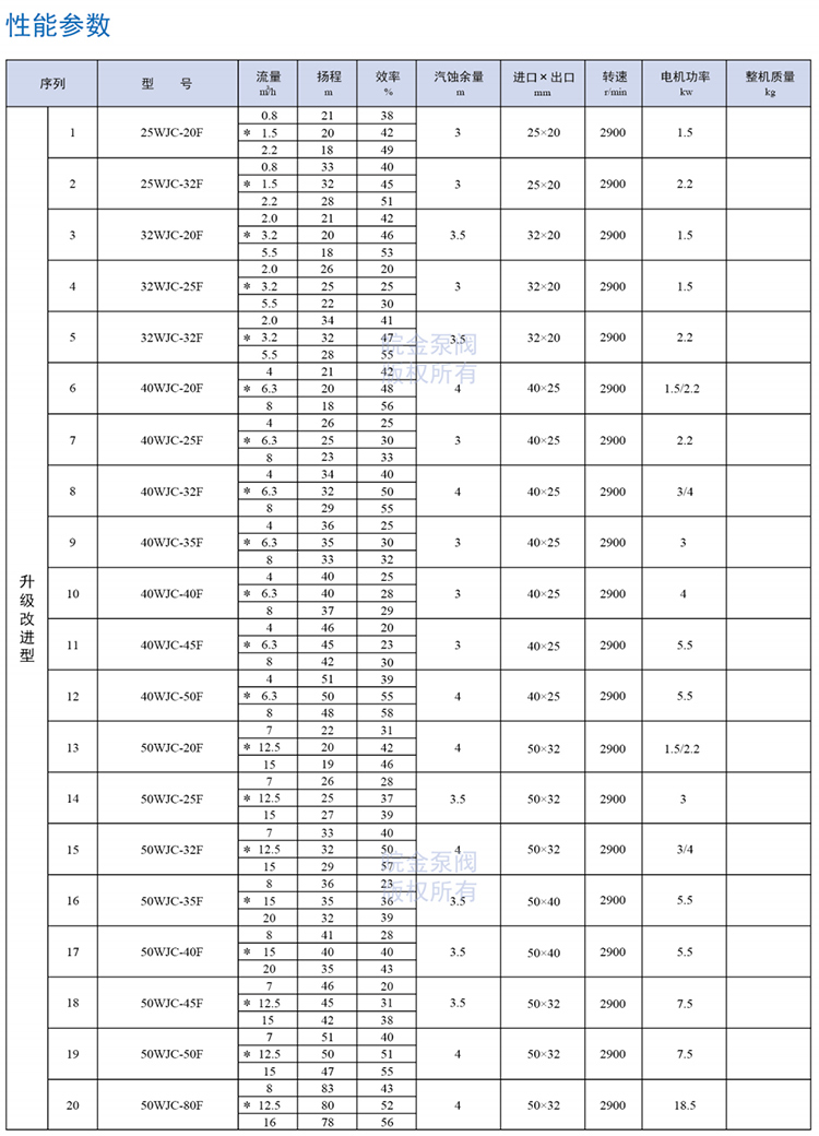 皖金泵閥襯氟磁力泵主要參數(shù):